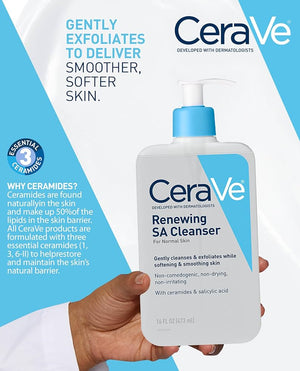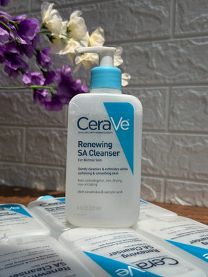 CeraVe Renewing SA Cleanser is a dermatologist-developed face wash designed to gently exfoliate and cleanse the skin. Formulated with salicylic acid, it helps remove dead skin cells, promoting a smoother and clearer complexion. Its unique blend also includes ceramides and hyaluronic acid, which support the skin’s natural barrier and maintain hydration. Ideal for daily use, this cleanser effectively refreshes without stripping moisture, making it suitable for normal to oily skin types. Experience visibly renewed skin with a balanced and comfortable feel. Now available at a special price of Rs. 3500, down from Rs. 7000.