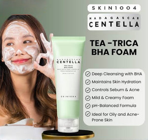 SKIN1004 Tea-Trica BHA Foam. Best Cleanser for Sensitive, Acne-Prone Skin